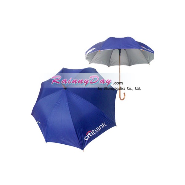 42-UM002 ร่ม24" แกนไม้ ด้ามไม้งอ UVเงิน