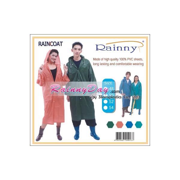 เสื้อกันฝนผู้ใหญ่ แบบผ่าหน้า (โปร่งแสง)